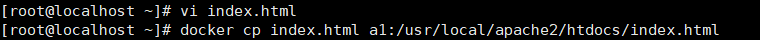 docker cp index.html a1:/usr/local/apache2/htdocs/index.html