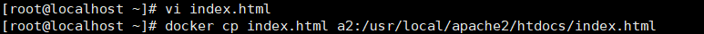 docker cp index.html a2:/usr/local/apache2/htdocs/index.html