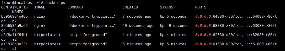 docker run -itd -p 62080:80 --name a2 httpd:latest