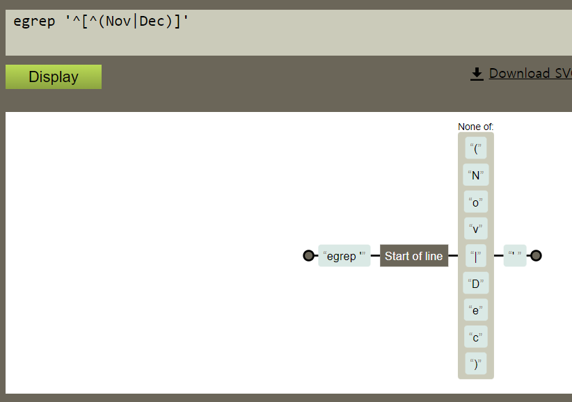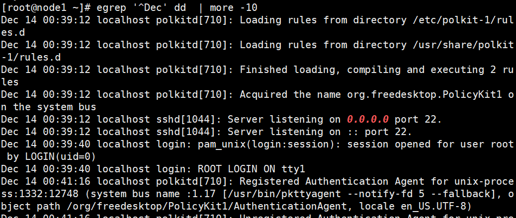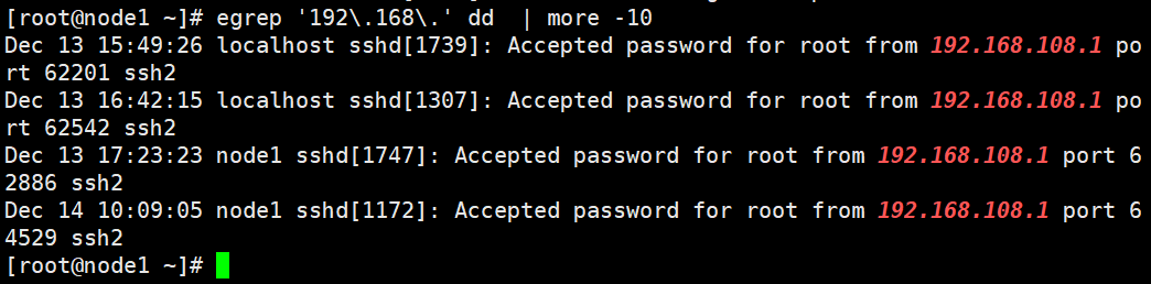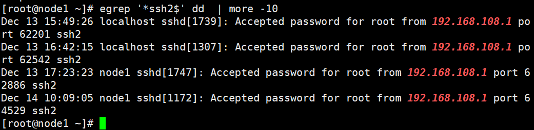 egrep 'sshd[^(Sep|Oct|Nov)]' dd | more -10