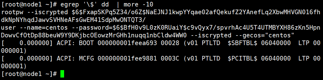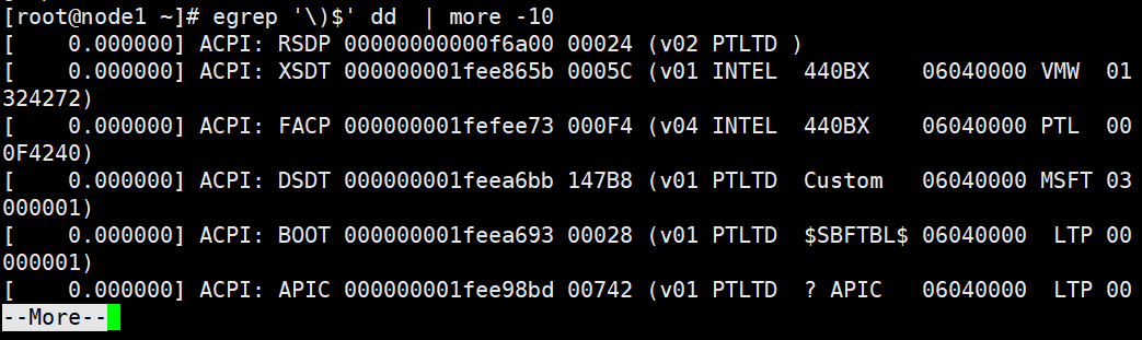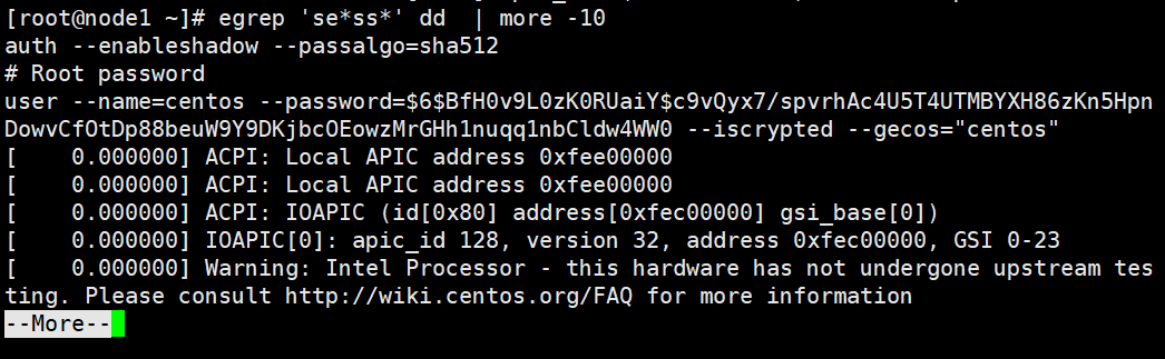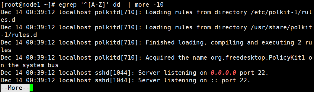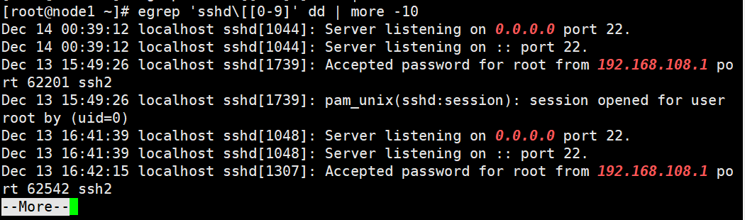 egrep 'sshd\[[0-9]+\]' dd | more -10
