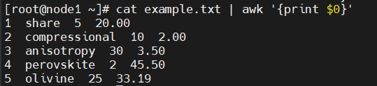 cat example.txt | awk '{print $0}'