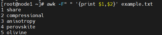 awk -F" " '{print $1,$2}' example.txt