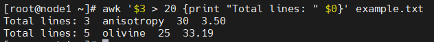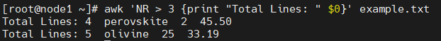 awk 'NR > 3 {print "Total lines: " $0}' example.txt