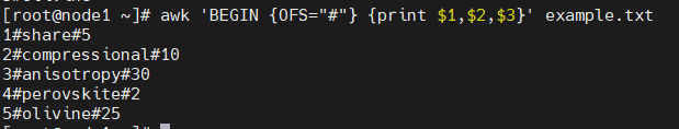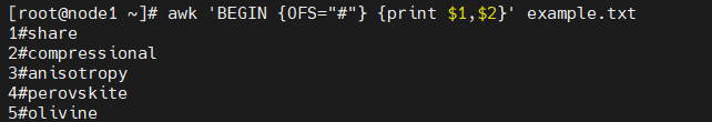 awk 'BEGIN {OFS="#"} {print $1,$2}' example.txt