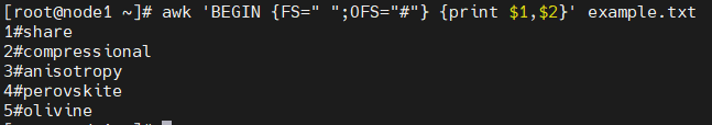 awk 'BEGIN {OFS="#"} {print $1,$2}' example.txt