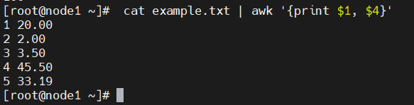 cat example.txt | awk '{print $1, $4}'