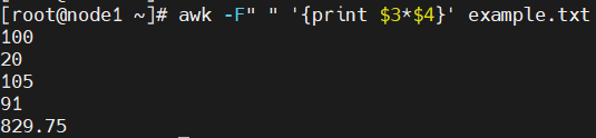 awk -F" " '{print $3*$4}' example.txt