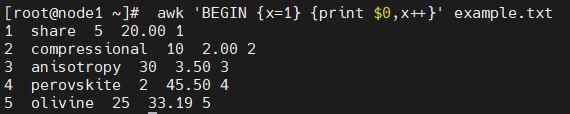 # awk 'BEGIN {x=1} {print $0,x++}' example.txt