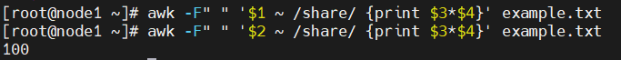awk -F" " '$1 ~ /share/ {print $3*$4}' example.txt