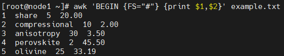 awk 'BEGIN {FS="#"} {print $1,$2}' example.txt