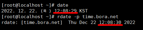 보라넷이라는 타임서버의 시간과 본인의 리눅스의 시간을 비교해본다. 24초 차이가 난다.