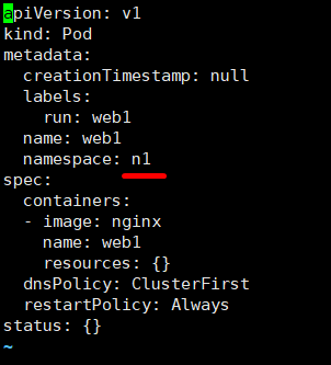 k run web1 --image=nginx --namespace=n1 --dry-run -o yaml > n1.yaml