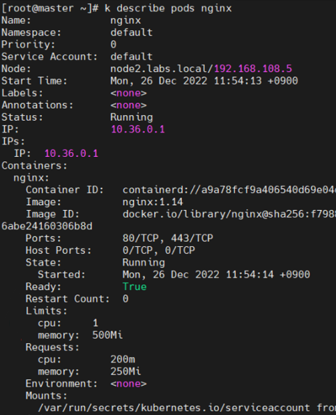 다음의 아랫부분과 같이 yaml에 설정했던 대로 리소스가 할당된 것을 알 수 있다.