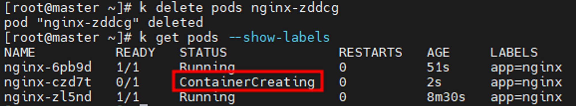 # k delete pods nginx-zddcg