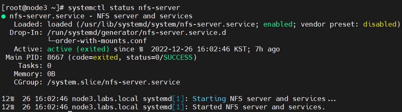 저번에 설정한 nfs-server가 활성화 되어 있음