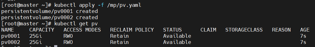 pv 설정 (한 서비스당 25G씩 할당한다)