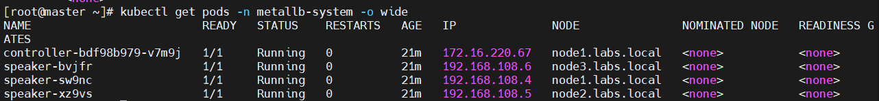 MetalLB 파드 5개 확인 중 컨트롤러 1개, speaker 3개 확인