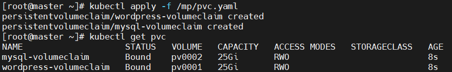 Wordpress 와 MySQL 이 각각 다른 PVC 를 사용하도록 생성한다.