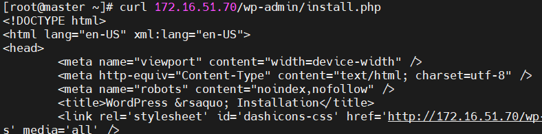아래와 같이 워드프레스의 pods ip로 curl을 하면 내용물이 잘 뜬다.
