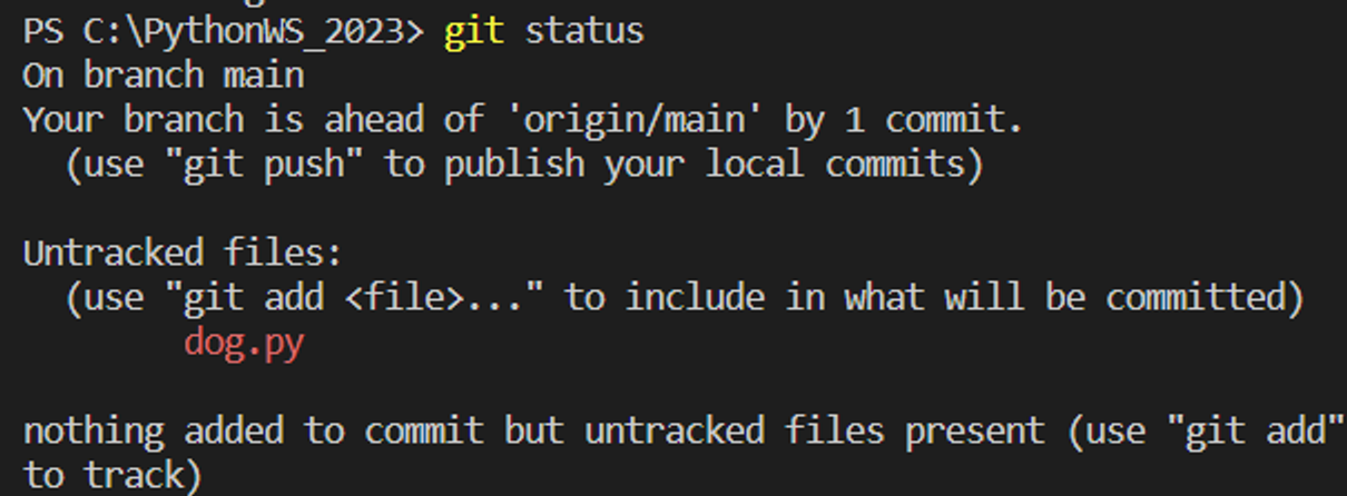 새로 파일 생성 시, ‘u’ 표시 (untracked)