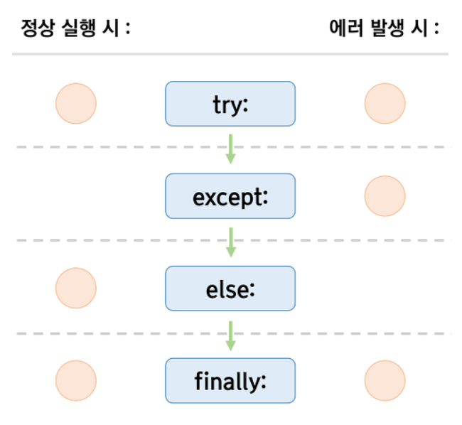 except : 에러 종류를 구체적으로 지시할 수 있음.