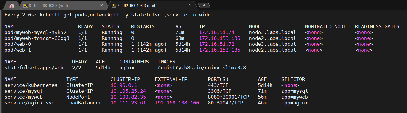2) 스테이트풀셋 nginx가 2레플리카 돌아간다 (다이나믹pv)