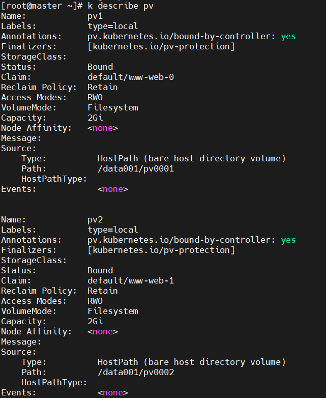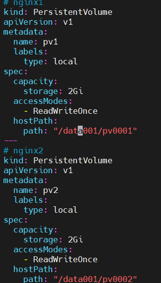 mkdir /data001/{pv0001,pv0002}