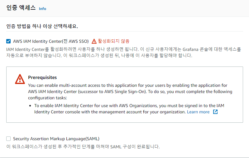 실습에서는 빠른 진행을 위해 AWS SAML을 선택.