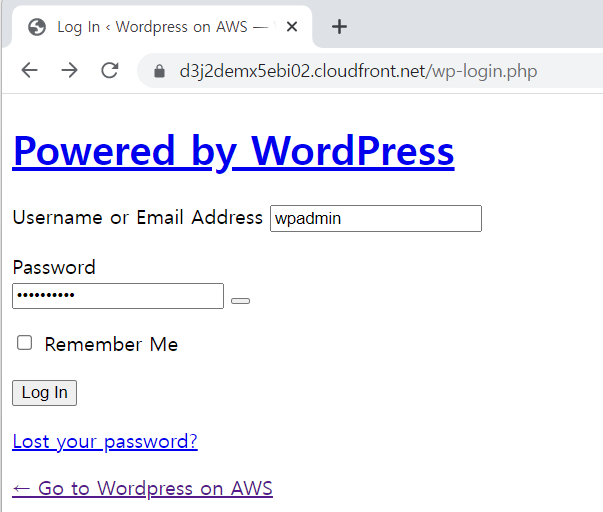 클라우드프론트 DNS 주소로 들어가서 로그인 하면