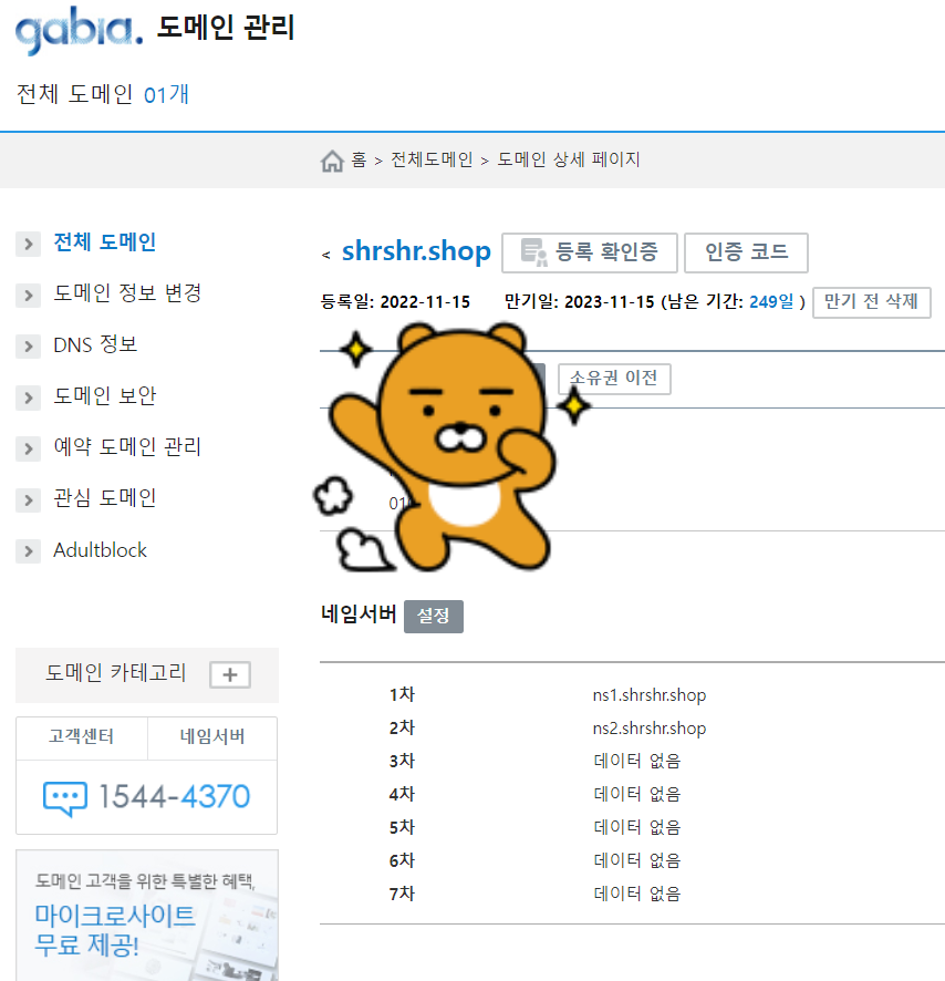 나같은 경우는 예전 포스팅에 가비아에서 구입한 도메인을 네이버 클라우드 서버에 붙이는 포스팅 했을때 구입했다.