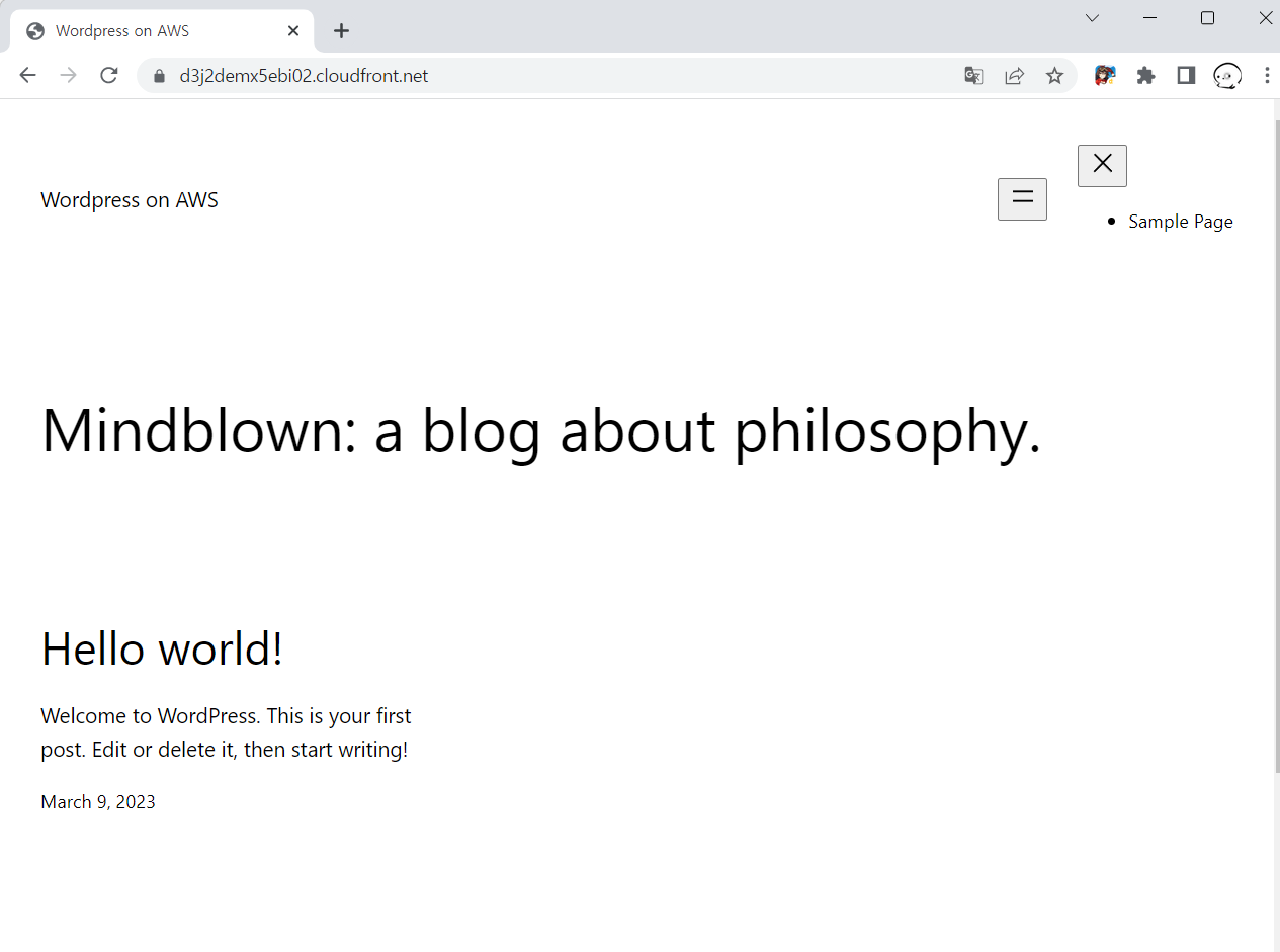 클라우드프론트의 DNS 주소로 접속하면 ALB가 받아서