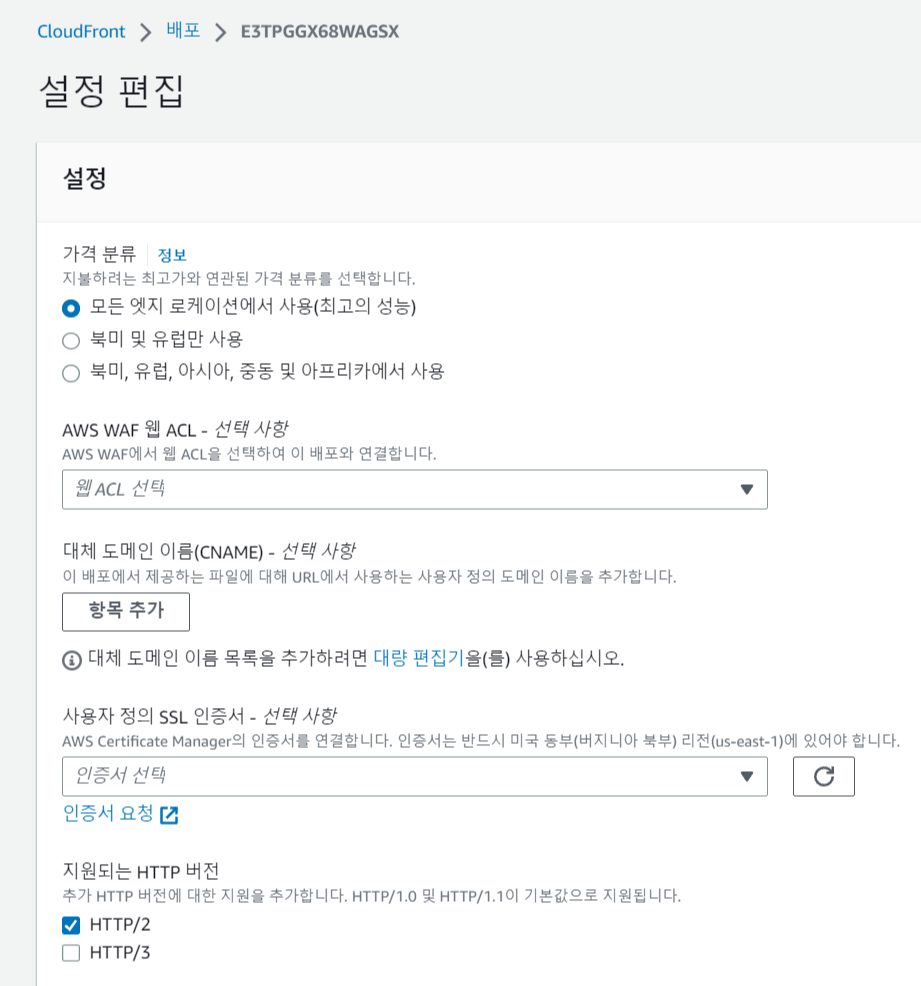 위 짤대로 하지 말고 모든 엣지 로케이션에서 사용 고르자.