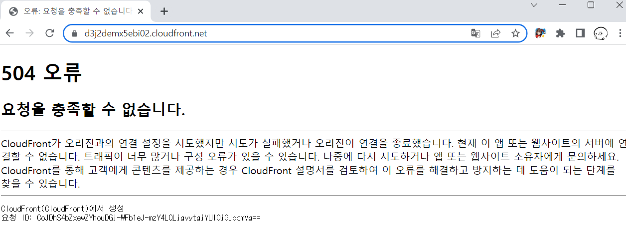 어...뭘 설정 안한거지 일단 내용 확인해보면 오리진인 ALB단에서 연결이 실패된건데