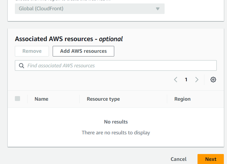 일단 WAF부터 만들고 클라우드 프론트엔 나중에 달아주도록 하자. 쫘좌좍 next를 누른다.