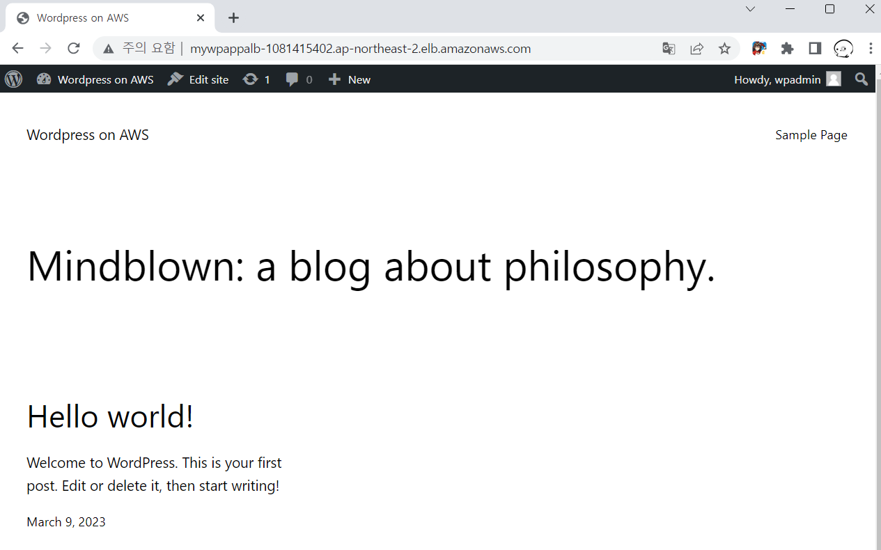 내부 사설단의 오토스케일링 그룹의 워드프레스 서비스를 가져온다.