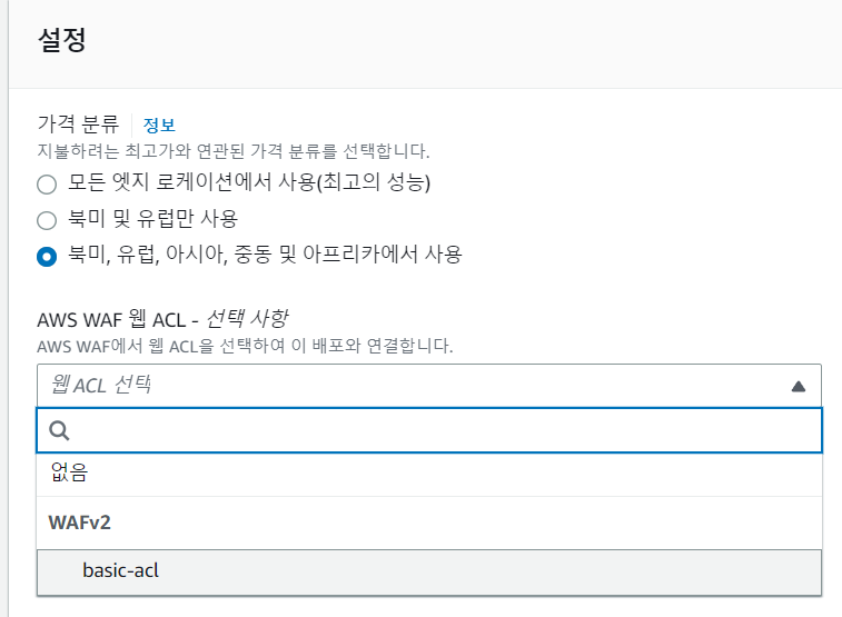 아니 클라우드프론트 만들때 WAF ACL 선택하라고하고