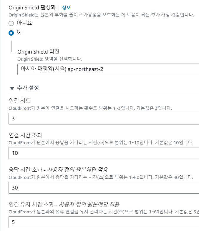Origin Shield 사용 시 추가 요금이 발생합니다.