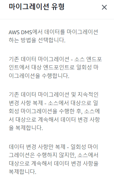 마이그레이션 유형에서 '지속적 변경사항 복제'를 선택한다.
