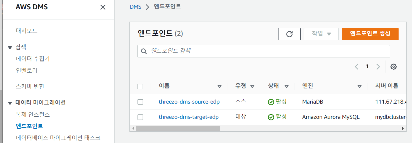 내 DMS 사용 목적은 온프레미스의 DB와 AWS상 DB의 싱크이므로