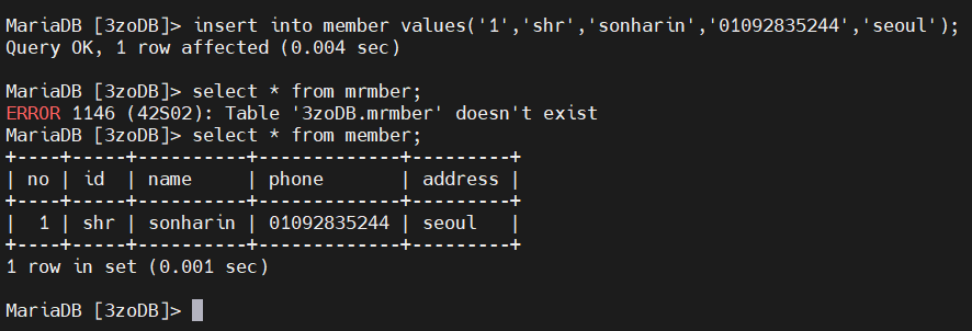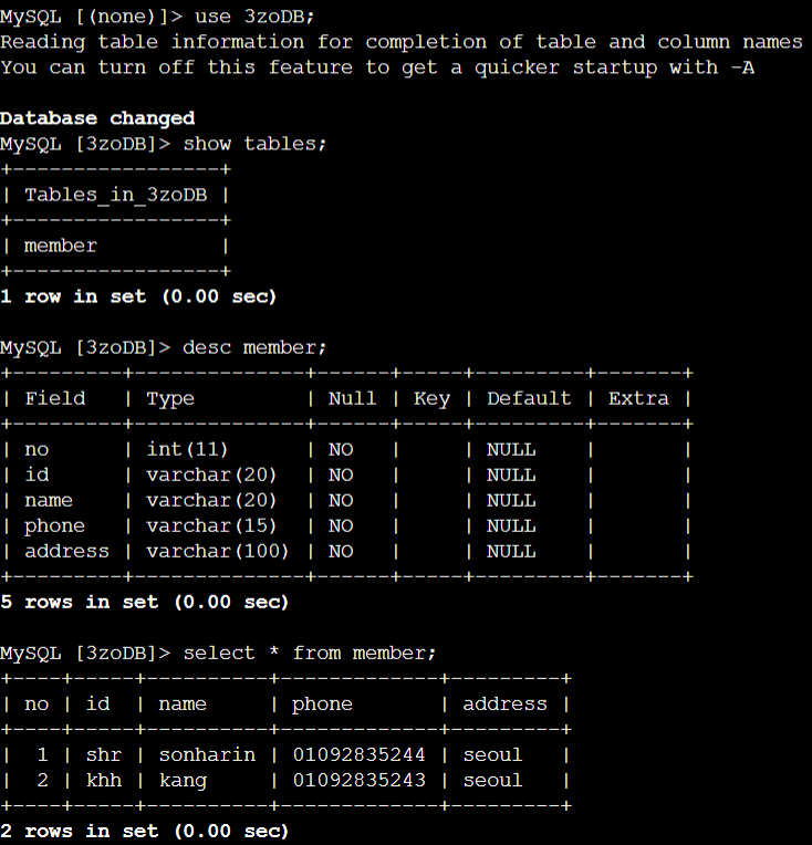 원래 추가해놨던 3zoDB - member랑 dd - bb가 목록에 잘 들어가 있는것을 볼 수 있다.