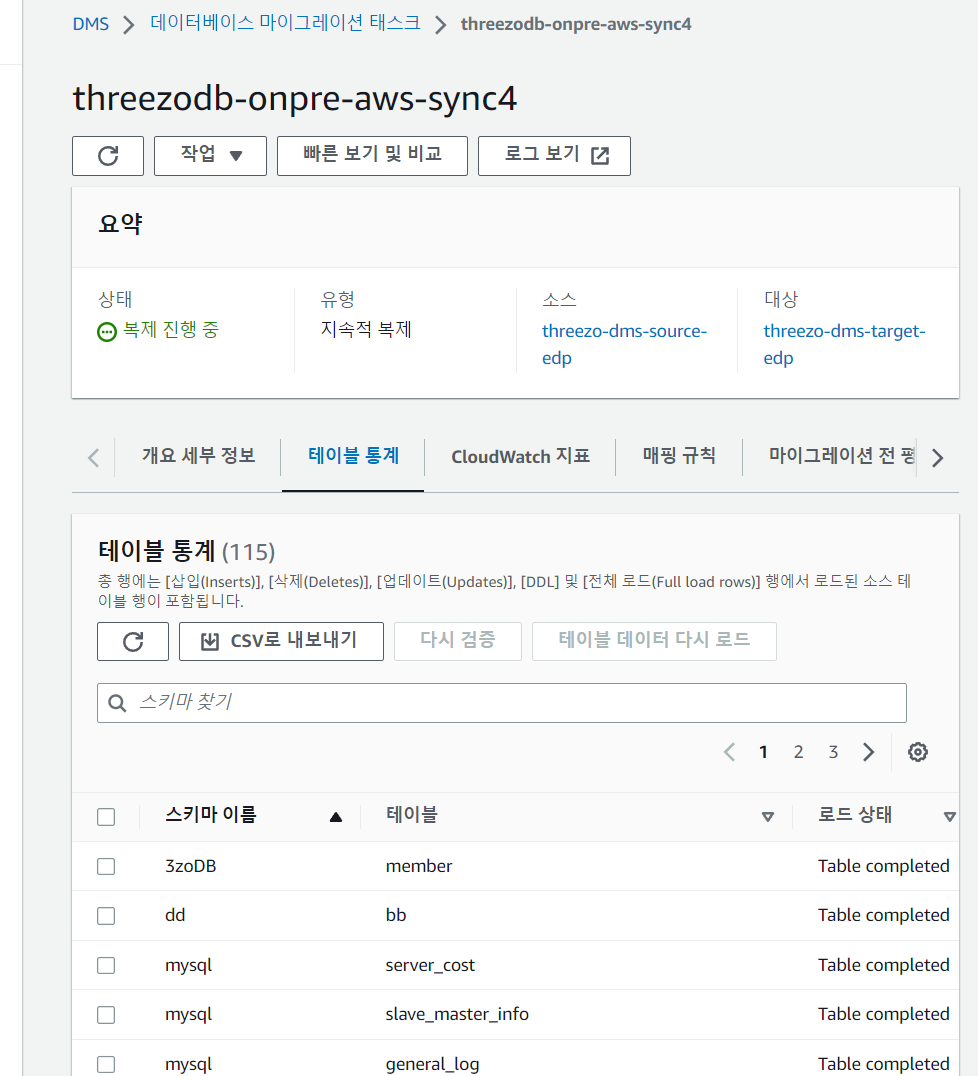 내가 DMS를 채택한 목적은 지속적인 온프레 DB와 AWS DB의 Sync이기 때문에,