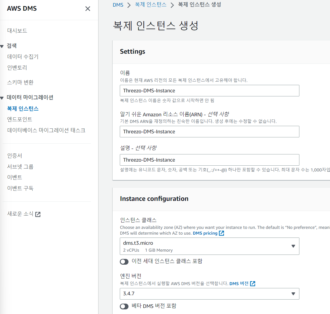 3. 복제 인스턴스 생성