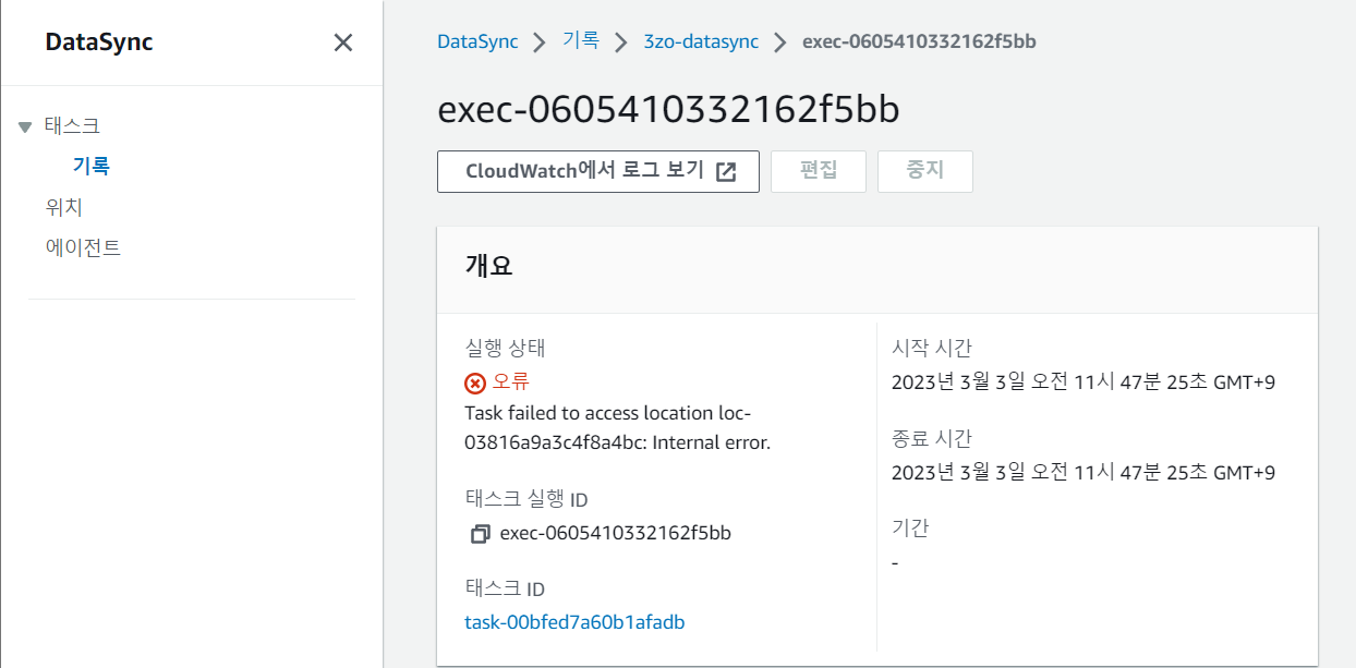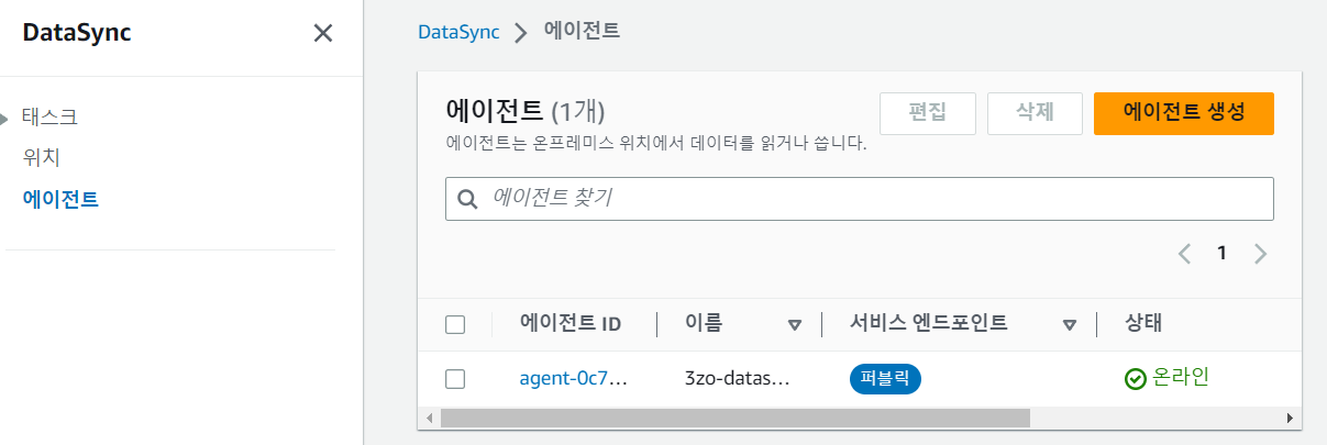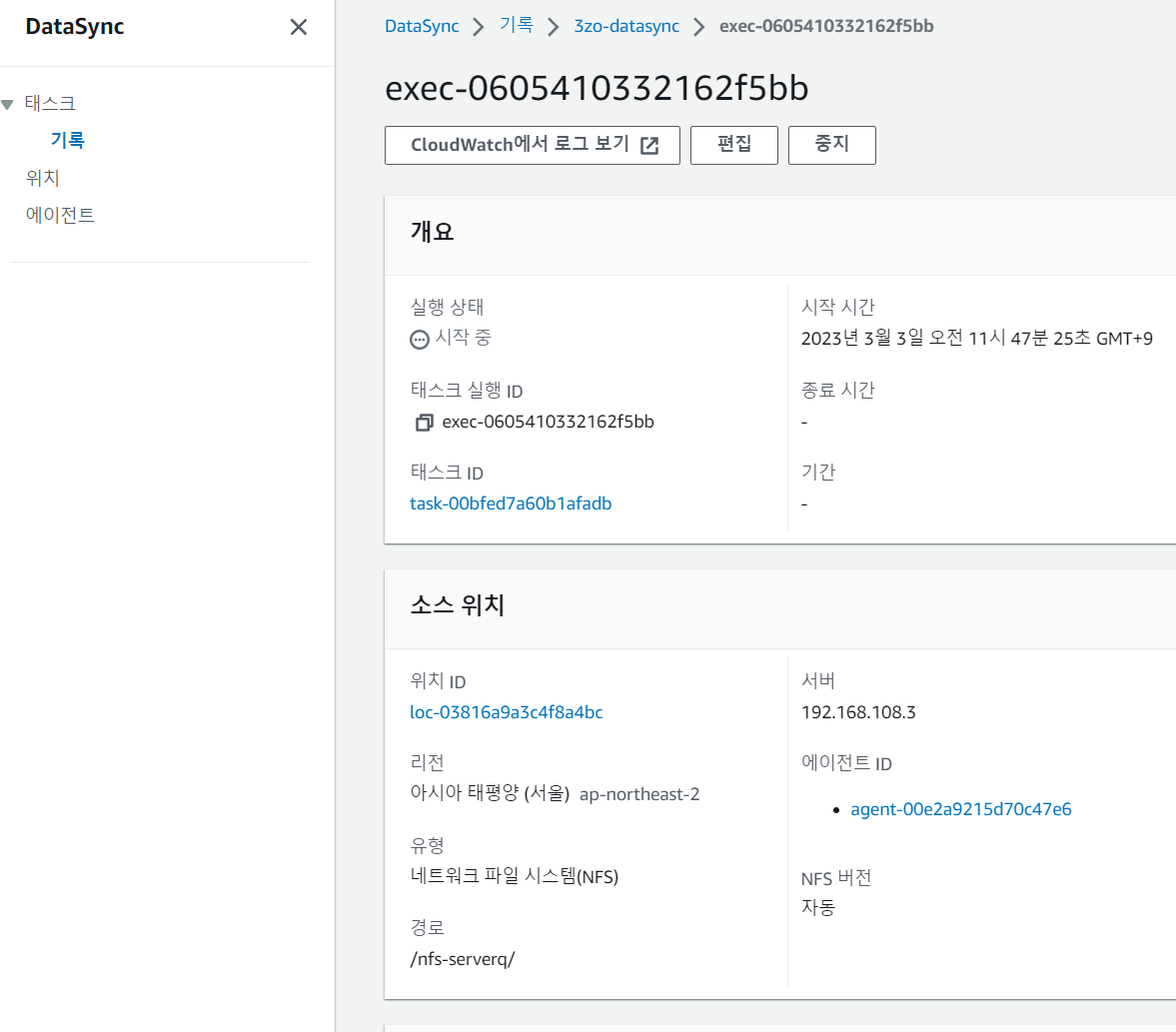 다음 글에 이어서 [Project] - Datasync + storage gateway로 실시간 싱크-2 로 찾아오겠다.