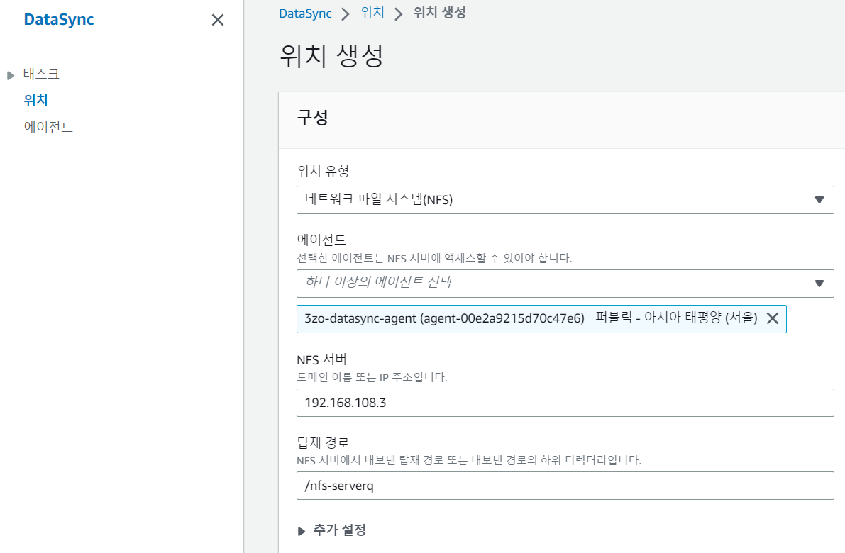 그리고 그 NFS 서버의 해당 디렉토리를 통째로 또 Datasync 에이전트에서 마운트할것이다.