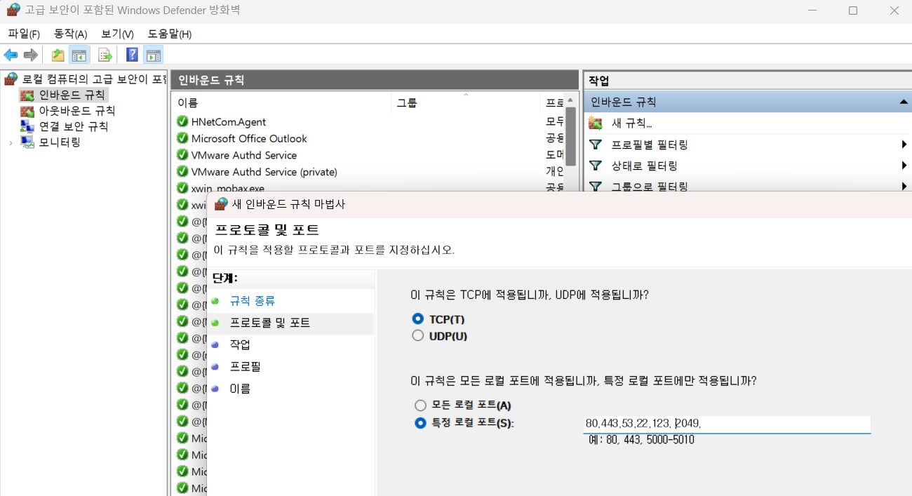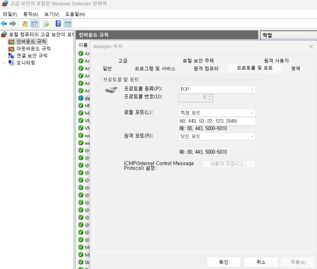 내 컴퓨터 방화벽에서 의심되는 포트 다 개방~~~~
