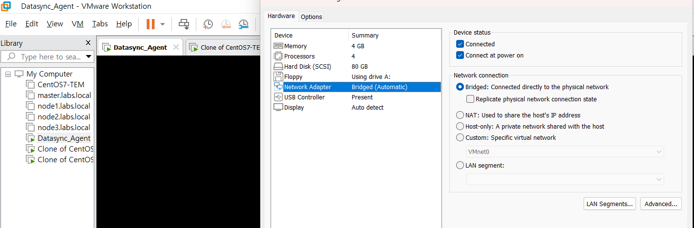 Agent가 VMware에 올라왔을때 네트워크 어뎁터를 NAT말고 다른거 꼽고있는지 확인하고 바꿔줄것.