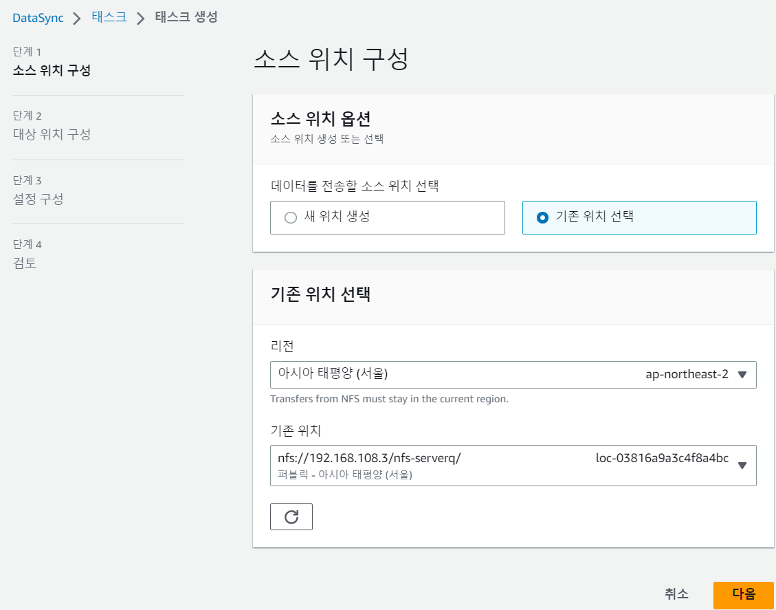 방식 : AWS DataSync를 사용하여 온프레미스 NFS 서버에서 Amazon S3로 데이터를 마이그레이션하고