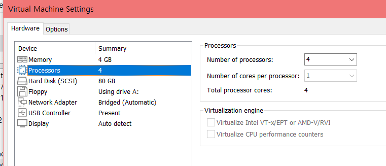 반영시키려면 VMware 머신을 재시작 해줘야한다.