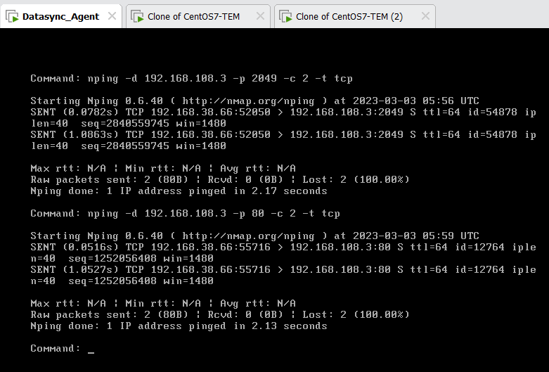 NFS server 쪽에선 agent랑 통신(핑)도 되고 방화벽도 아예 죽어있어서 vm머신 선에서 막힐일이 없다.